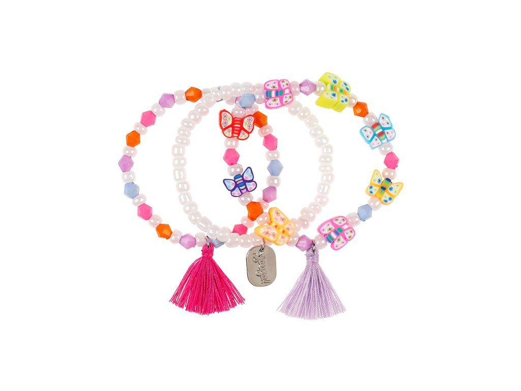Různě zdobené náramky jsou doplněné malým přívěskem. Korálky jsou navlečené na pružné gumičce, která se snadno přizpůsobí dětskému zápěstí a umožňuje pohodlné nasazení bez zapínání.