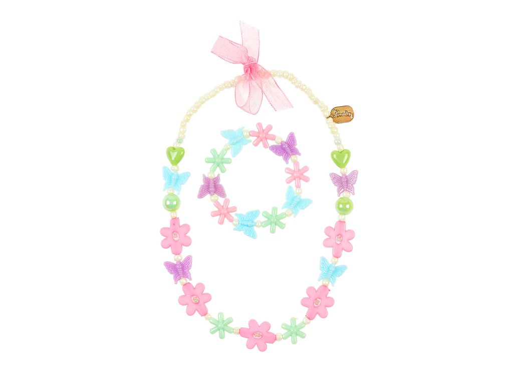 Krásná sada pro malé parádnice od 3 let obsahuje náhrdelník s korálky ve tvaru motýlků a květin a ladící elastický náramek. Jemné pastelové dodávají šperkům jemný a hravý vzhled, který si děti zamilují. Ideální doplněk na oslavy, focení i pro každodenní radost.