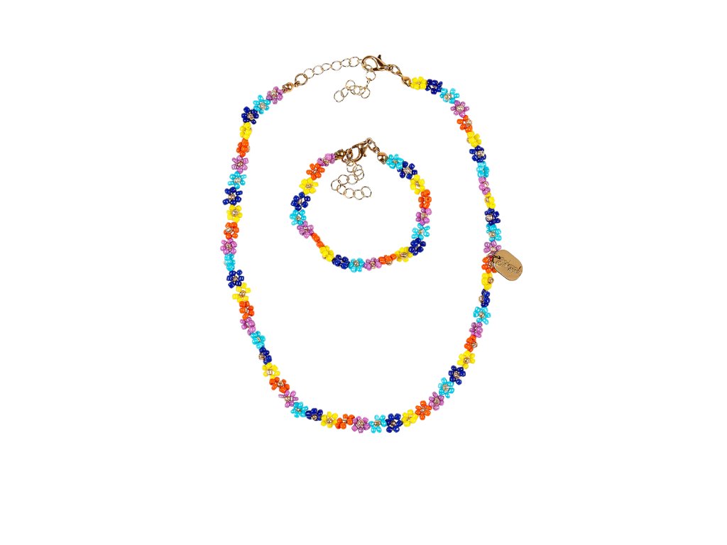 Krásná sada pro malé parádnice od 3 let obsahuje korálkový náhrdelník a ladící náramek. Jsou opatřeny zapínáním a snadno se nasazují. Korálky jsou navlečeny do tvaru květiny, což dodává šperkům jemný a hravý vzhled, který si děti zamilují. Ideální doplněk na oslavy, focení i pro každodenní radost.