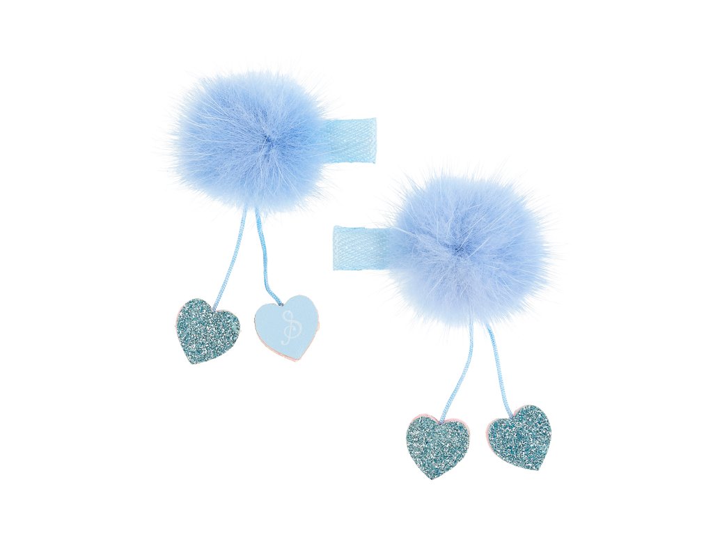 Souza! - Sponky do vlasů Amandine s bambulkou a srdíčky – modré - 2 ks
