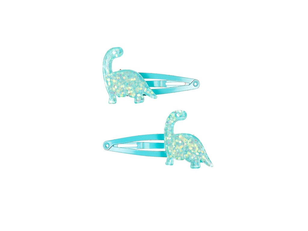 Sada dvou sponek do vlasů s motivem dinosaurů pro malé parádnice. Díky zacvakávacímu mechanismu sponky spolehlivě drží ve vlasech po celý den. Perfektní jako drobný dárek nebo stylový doplněk pro děti od 3 let. Délka sponky je 5 cm.