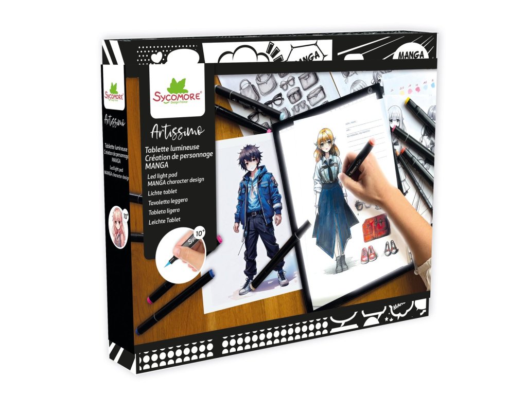 V sadě najdou děti vše, co potřebují k vytvoření svých vlastních manga postav. Tabulka s podsvícením jim umožní detailně vypracovat postavy. Lihové fixy dodají živé a výrazné barvy kresbám. Papír s hebkým a hladkým povrchem zajistí, že barvy krásně vyniknout a manga se stanou skutečnými uměleckými díly. S touto kreativní sadou můžou mladí ilustrátoři rychle získat dovednosti a začít tvořit své vlastní příběhy.