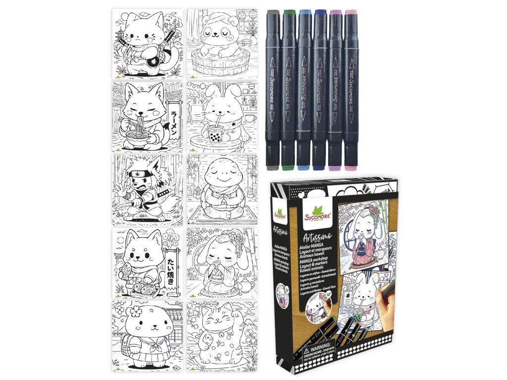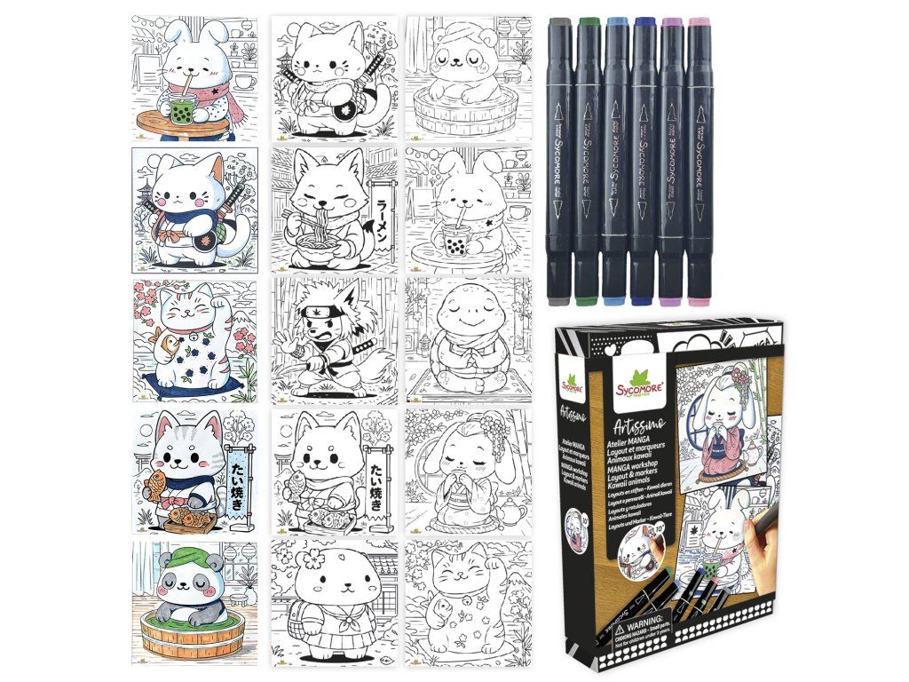 Roztomilá sada s kawaii zvířátky! Volnočasový box pro mladé ilustrátory od 10 let. Malí umělci si vybarví 10 přiložených ilustrací pomocí lihových fixů a své dílo mají možnost si personalizovat díky vybarvitelným samolepkám. Manga je oblíbená v celém světě. Je to styl kresby, který vznikl v Japonsku. Lihové fixy umožní dětem vytvářet precizní čáry a detaily a dodají kresbám živé a výrazné barvy. Papír s hebkým a hladkým povrchem zajistí, že barvy krásně vyniknout a manga se stanou skutečnými uměleckými díly. S touto kreativní sadou můžou mladí ilustrátoři rychle získat dovednosti a začít tvořit své vlastní příběhy.