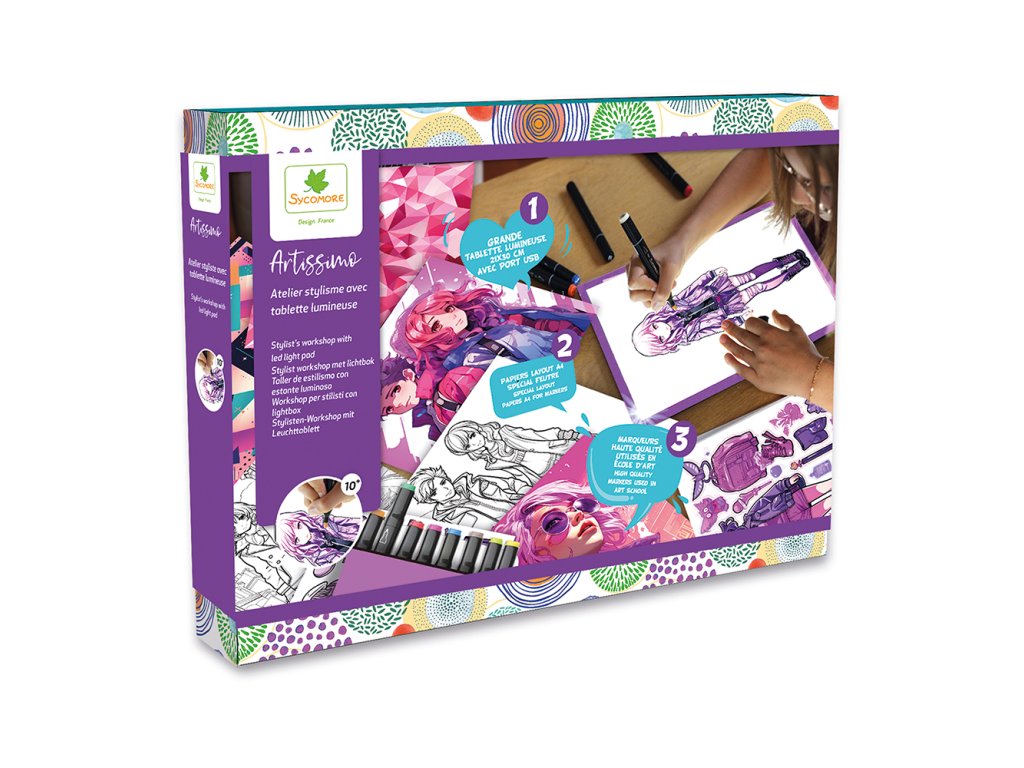 Skutečná módní dílna pro tvorbu trendy outfitů pro děti od 10 let. Díky svítící podložce a četným doplňkům bude vaše dítě moci vytvářet, kreslit a upravovat outfity jako skutečný módní stylista.