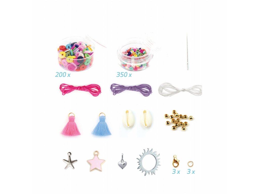 Kreativní šperkařská sada obsahuje vše, co potřebujete k výrobě originálních módních náramků. Pomocí této sady si děti od 7 let vytvoří několik náramků z korálků Heishi převážně v modré a růžové barvě.