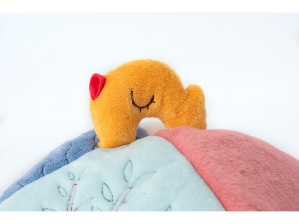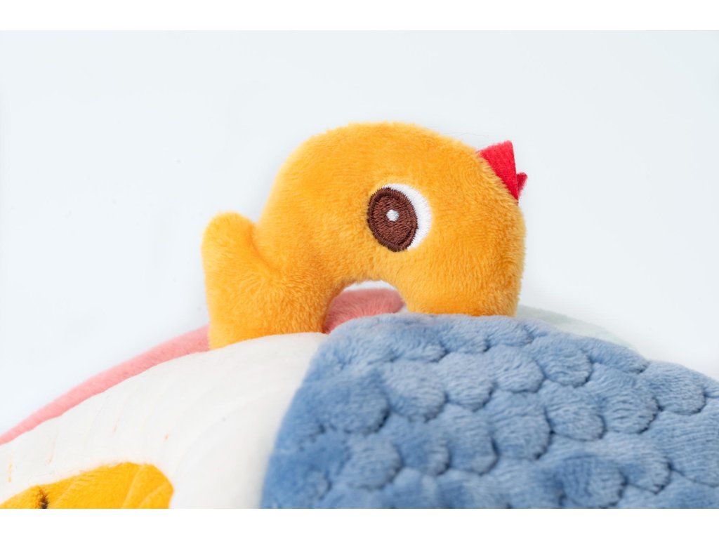 Upozornění – před podáním hračky dítěti odstraňte všechny úchyty, etikety a obaly. Vhodné pro děti od narození. Odpovídá ASTM F963/CPSIA. Prát při nízké teplotě a na jemný prací cyklus. Uchovejte obal pro možné budoucí použití. Sledute piktogramy.