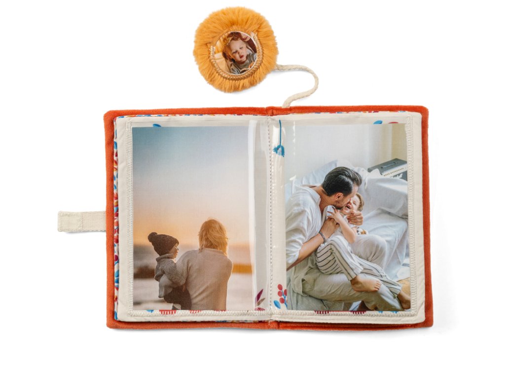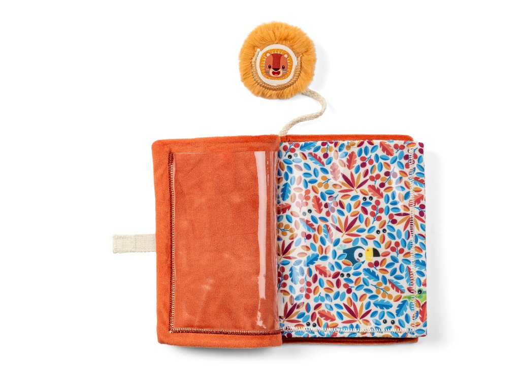 První fotoalbum pro první vzpomínky! Toto měkké látkové fotoalbum umožňuje vašemu dítěti mít fotografie svých blízkých po ruce. Je vhodné pro děti od 9 měsíců. Fotoalbum se lvem Jackem má 10 kapes, speciální záložku s papouškem: na zadní stranu vložte fotografii svého dítěte a album si tak personalizujte. Její kulatý tvar je ideální pro malé děti, které ji mohou mazlit nebo ho používat jako záložku. Je to ideální vizuální pomůcka, která zabaví vaše dítě během dlouhé cesty nebo dlouhého čekání. Album má pouze otíratelný povrch.