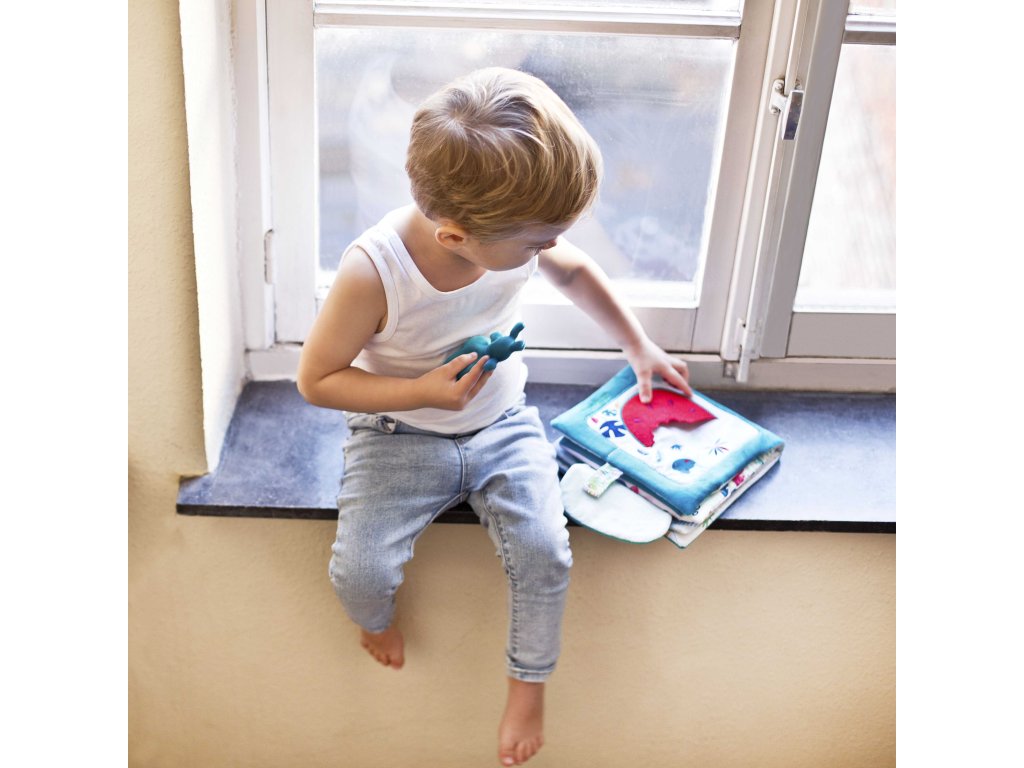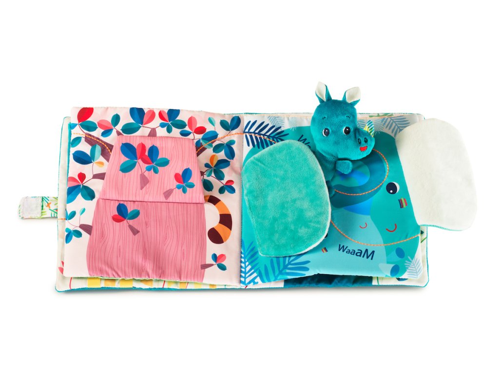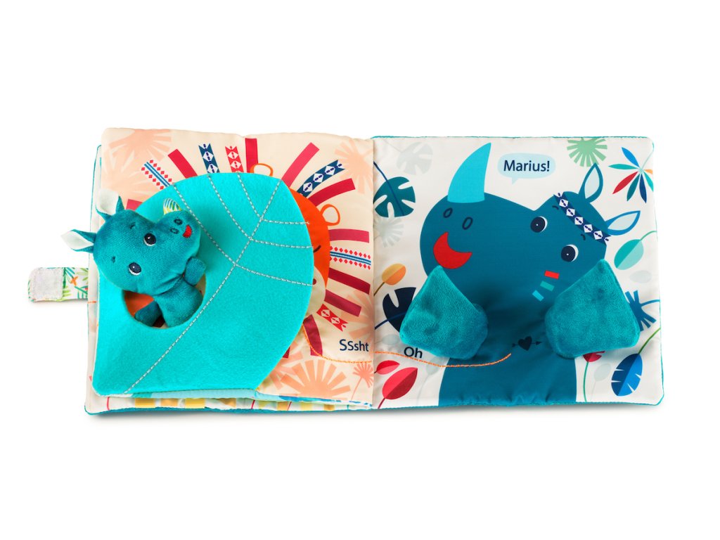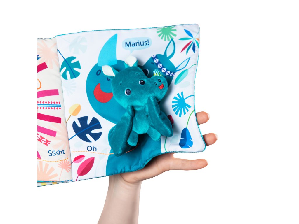 Krásná textilní knížka pro děti od 10 měsíců rozvíjí jemnou motoriku, smysly a představivost. Kniha je plná aktivit, ilustrací a součástí je i loutka nosorožce Mariuse. Děti Mariusovi pomáhají najít jeho tatínka. Ponořte se s dětmi do kouzelného světa příběhů s touto textilní knížkou. Rozměry knihy jsou 20 x 20 x 4 cm. Materiál: polyester a bavlna, lze prát v ruce.
